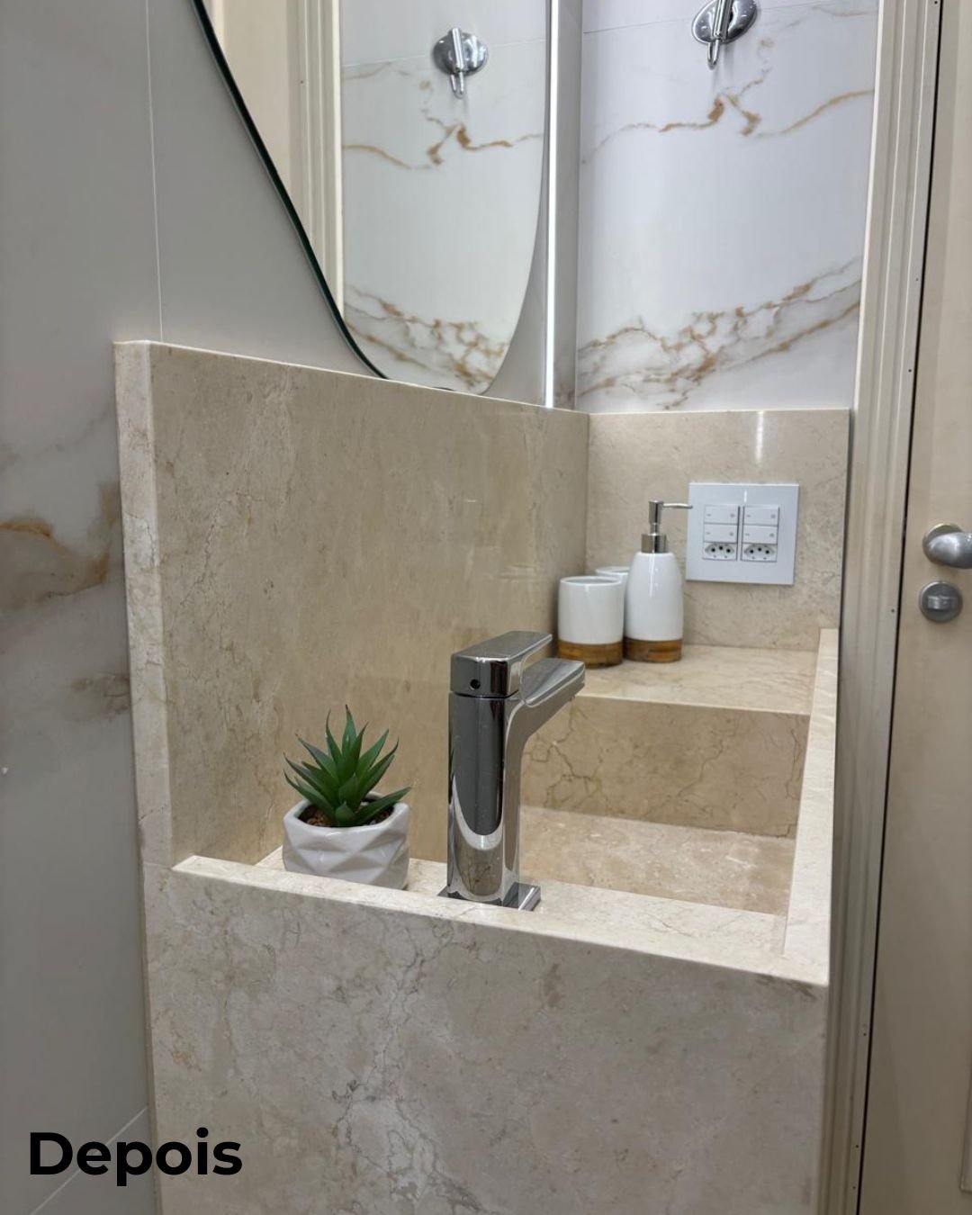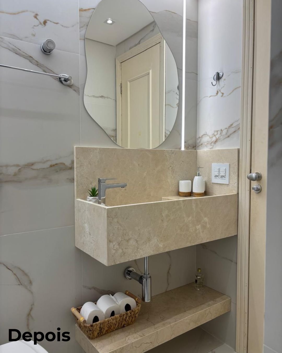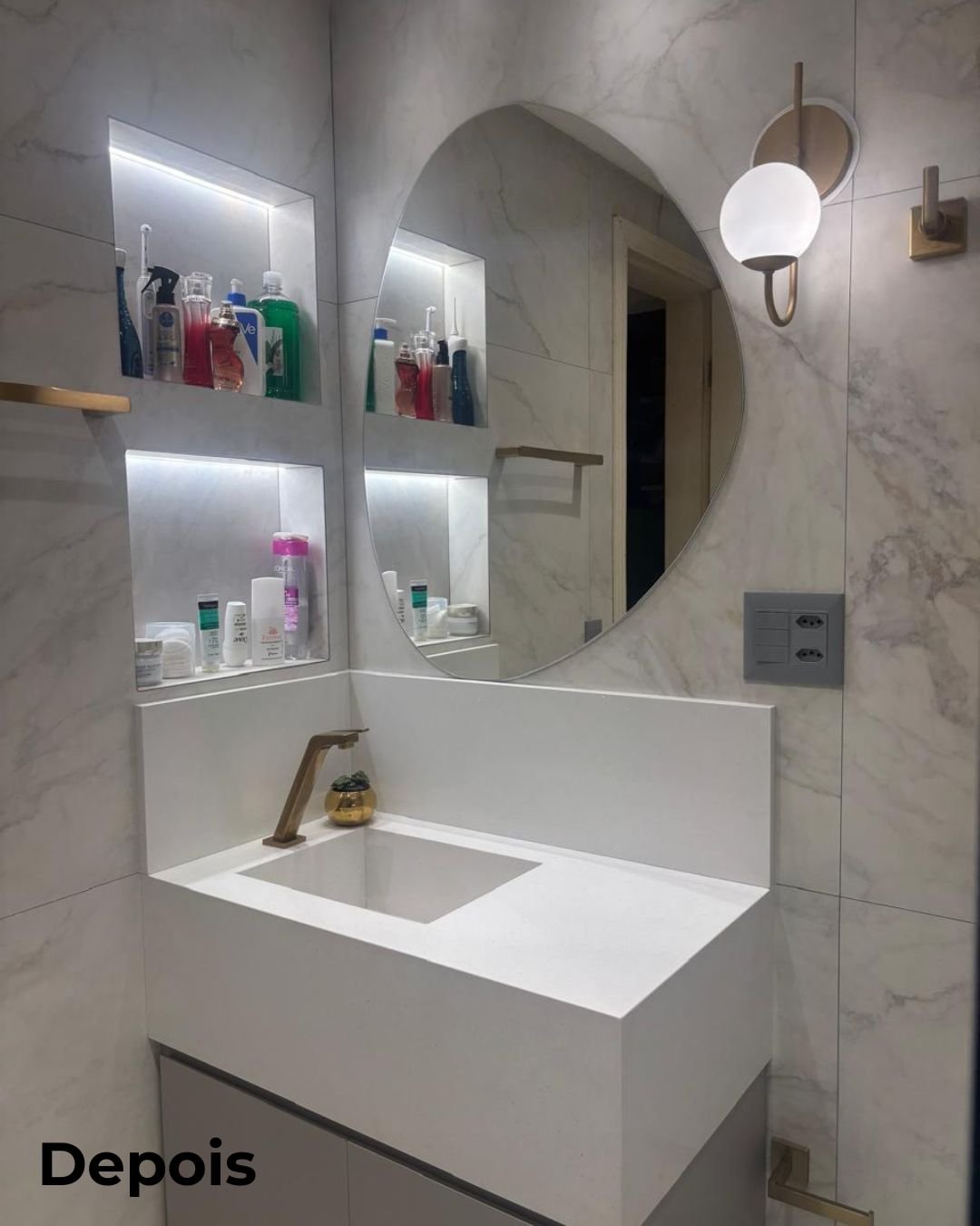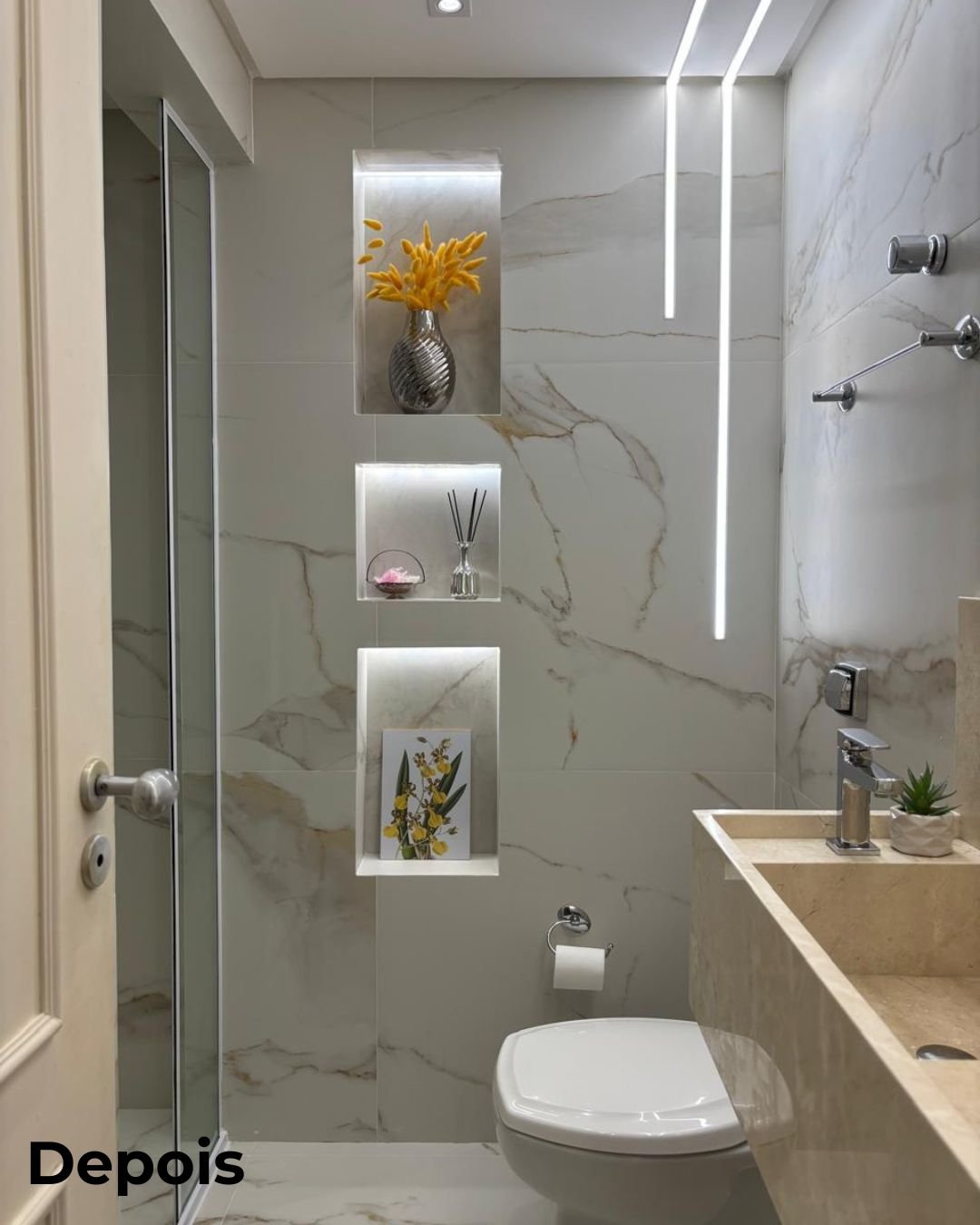 Para atender à visão da cliente, adicionei no projeto elementos como nichos embutidos em paredes, mobiliário moderno e multifuncional. Cada detalhe foi pensado para proporcionar uma experiência de única e exclusiva, sem tirar as funcionalidades diárias do ambiente.